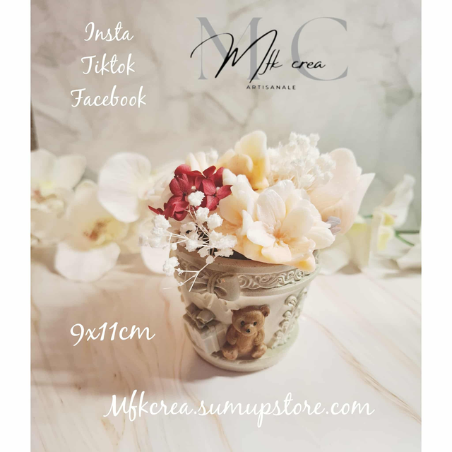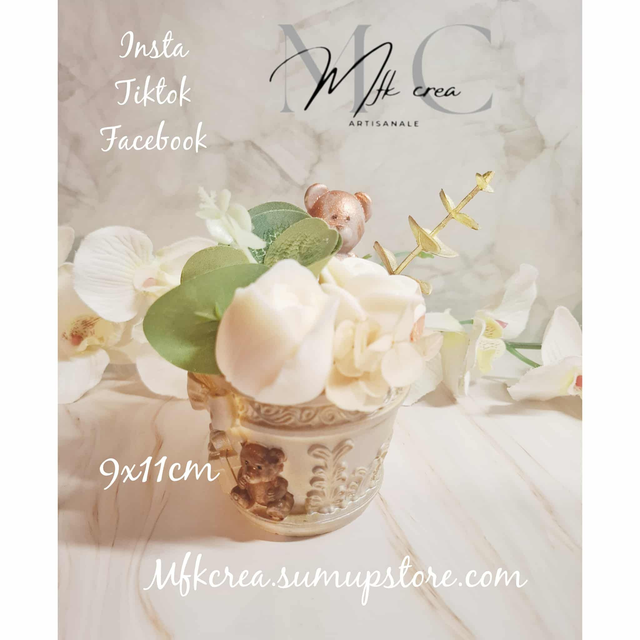 Coulé en Jesmonite, ce pot artisanal sublime une fleur en cire de colza naturelle, parfumée