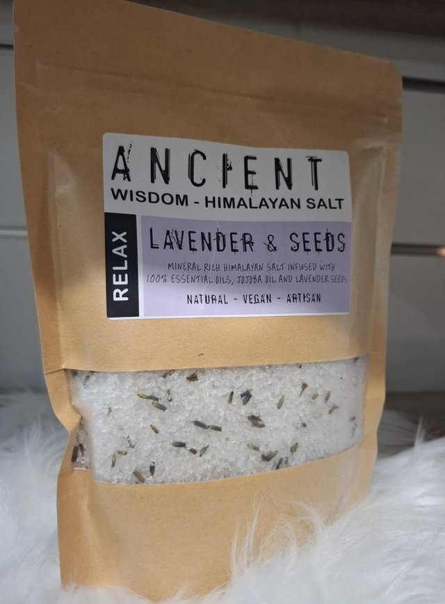 Sel d HIMALAYA bain de 500 grammes délicatement parfumé, procurant une sensation de bien-être et favorisant un moment de détente et de détox.